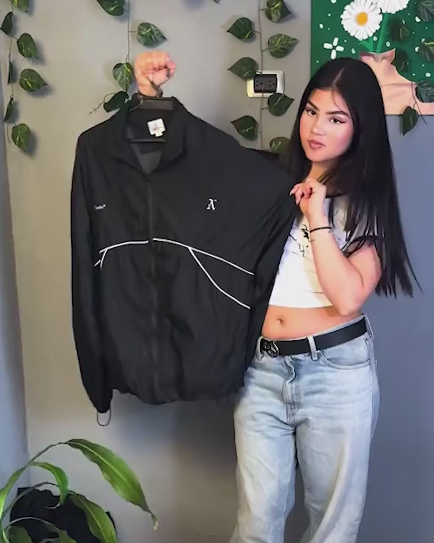 Chaqueta deportiva negra con líneas blancas